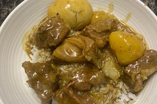 最近娃儿很喜欢吃我做的咖喱鸡,有次无意间和一位云南来的朋友聊起,他擅长做的是咖喱牛腩,于是大家探讨了一下,他的做法似乎更简单些: